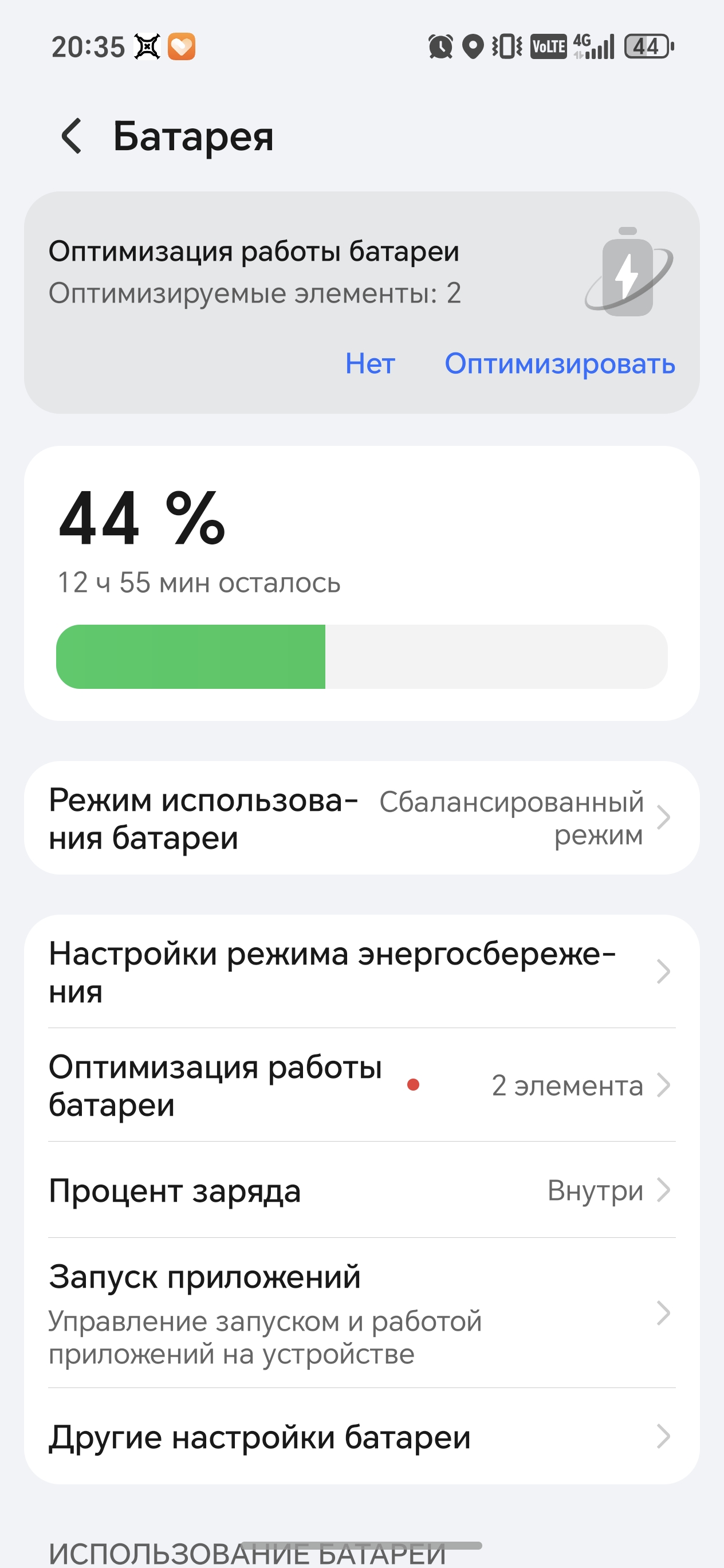 Запрет оптимизации батареи, шаг 1