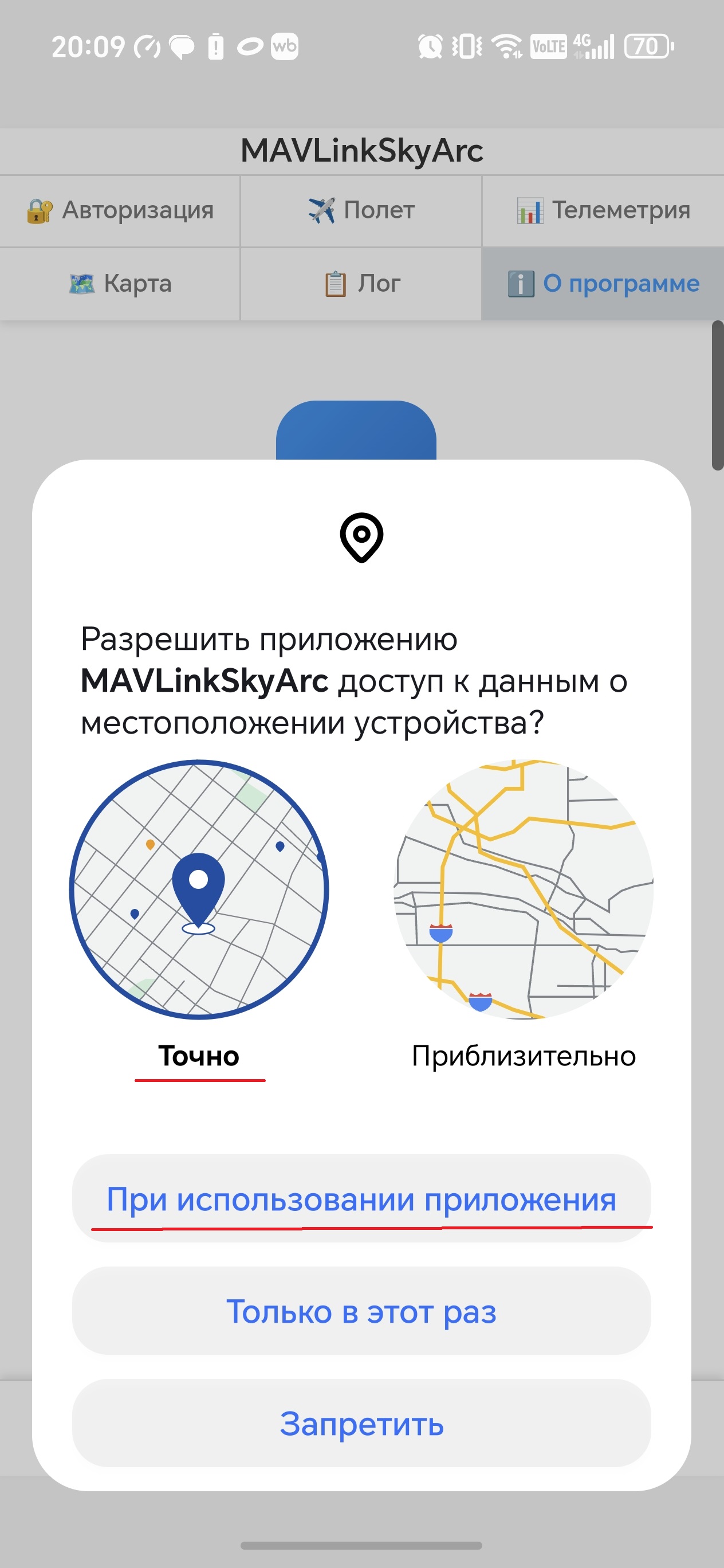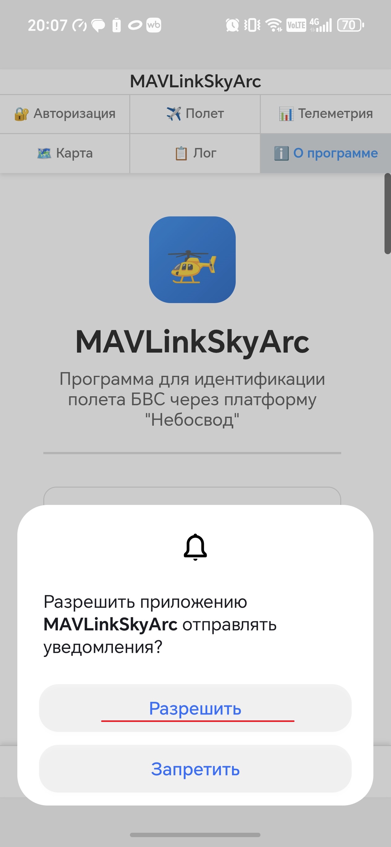 Внимание: ⚠️ Программа требует специальных разрешений, запрашиваемых при первом запуске: геолокация, выдача уведомлений и отключение оптимизации батареи.